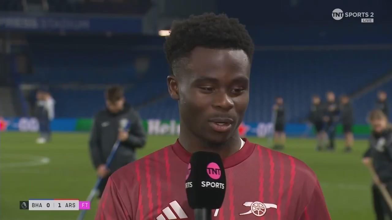 在英超第29轮打进一球帮助阿森纳客场1-0击败布莱顿之后,萨卡接受了来自TNT体育的采访。