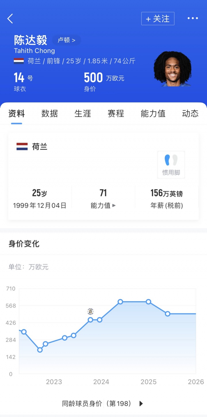 陈达毅目前效力于卢顿,代表球队出场过69次,打入7球。由于季前赛受伤,陈达毅新赛季还未代表卢顿出场过。